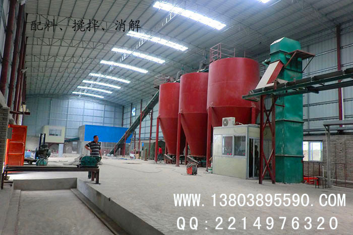 下面是我公司為廣東海豐公司配置的年產(chǎn)1億塊灰砂蒸壓磚生產(chǎn)線設(shè)備生產(chǎn)現(xiàn)場: 1、配料、攪拌、消解階段